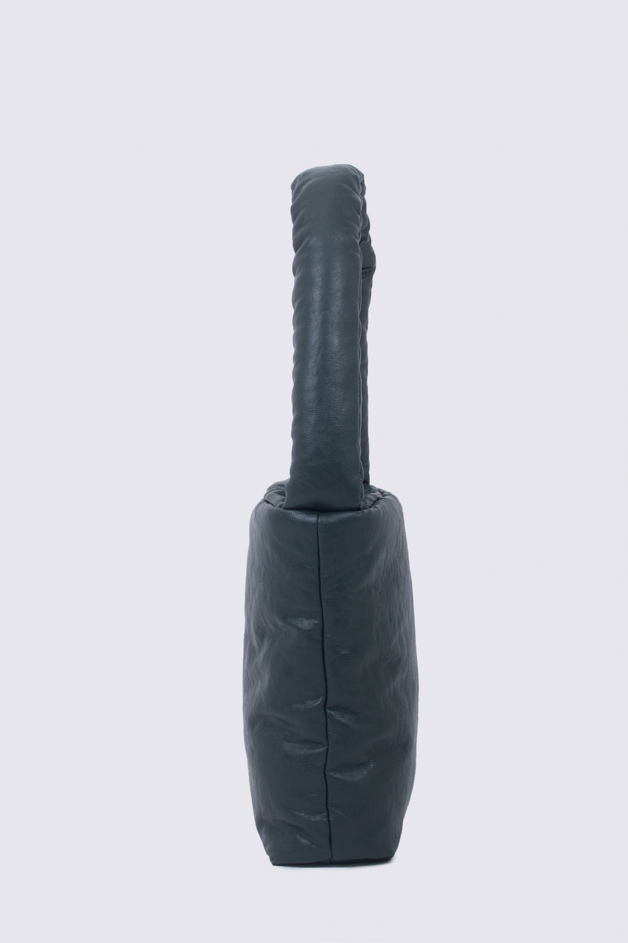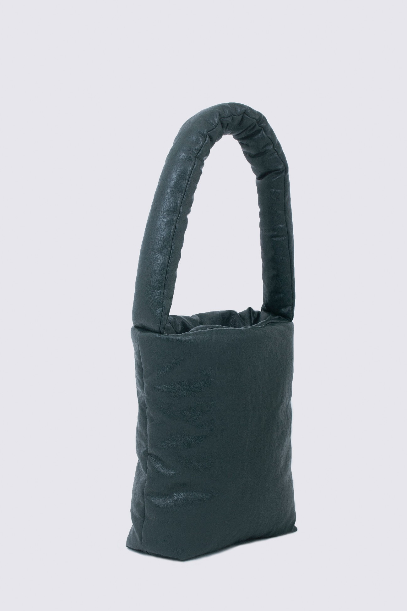 Dark green emerald Toy Bag made out of faux leather. Comes with black polyester lining, a silver magnetic closure and is waterproof. The bag is padded, creating a puffy look and feel.
