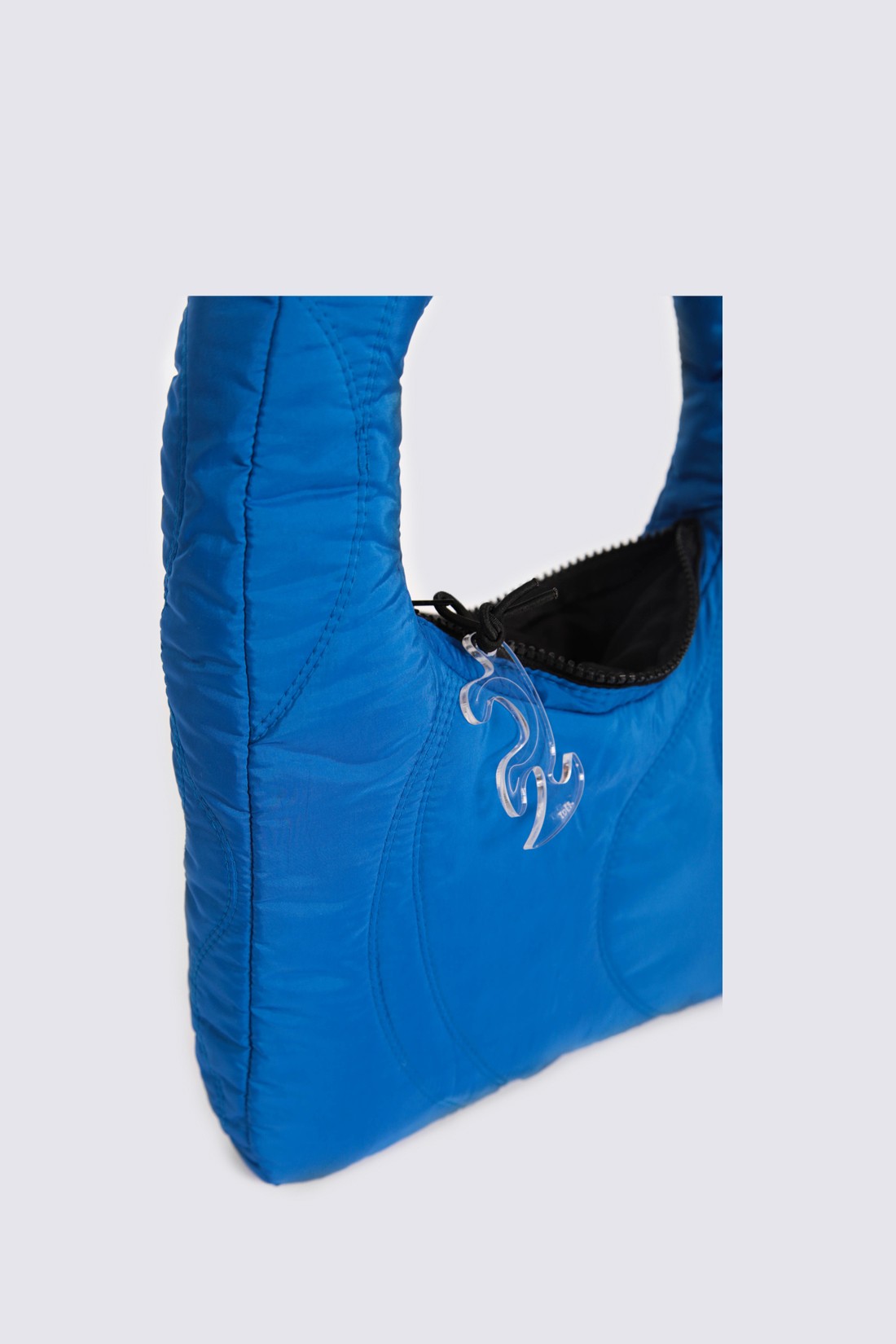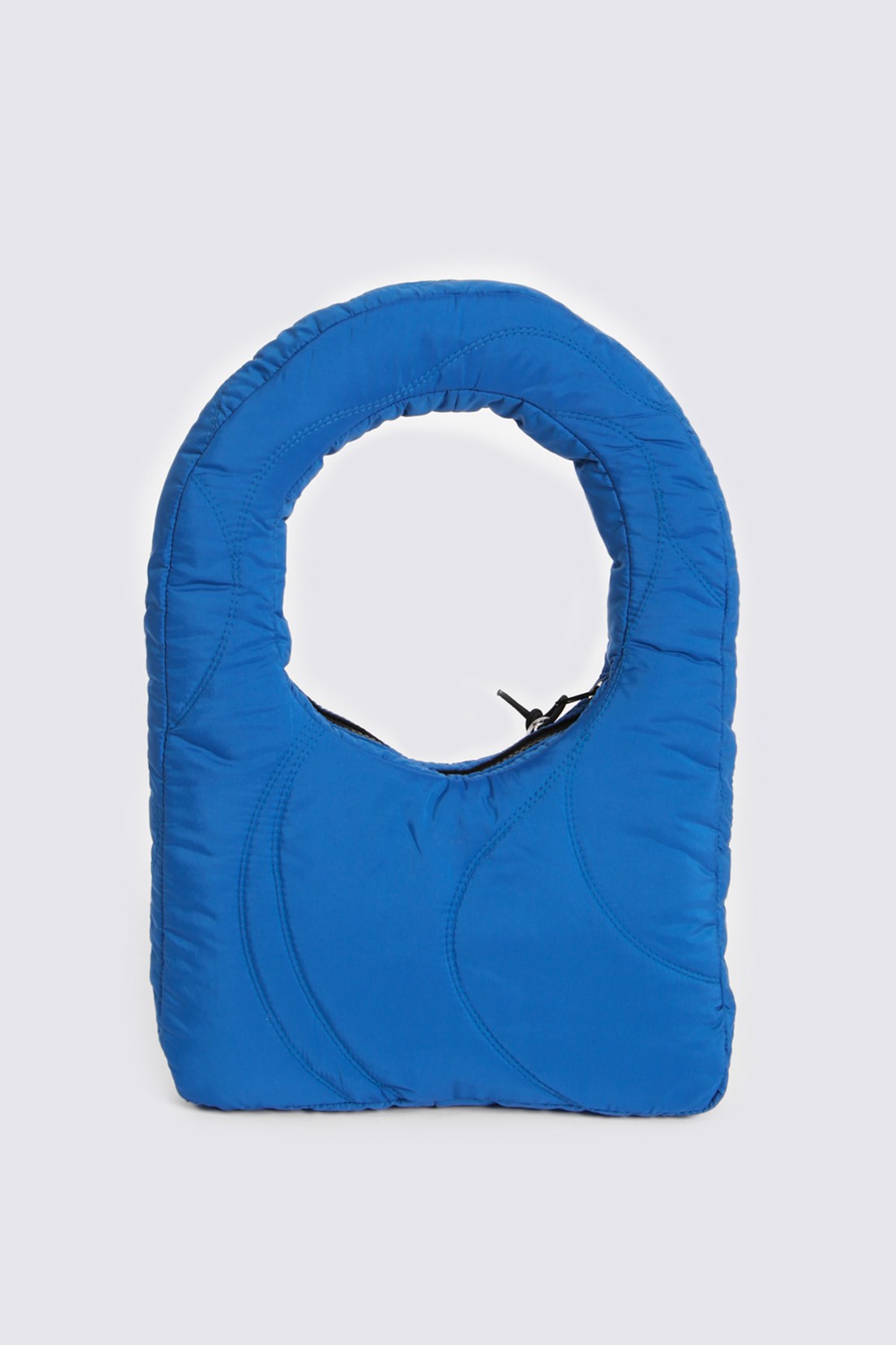 Blue -deadstock- nylon with stitched details in blue, black cotton lining.